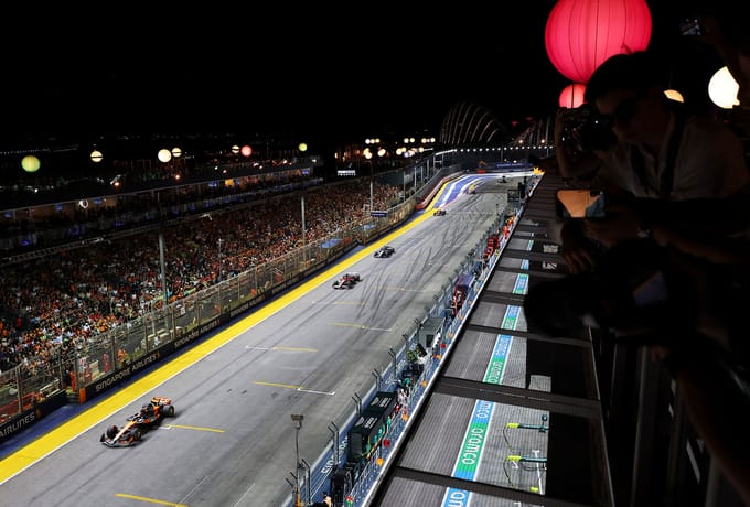 The Singapore Grand Prix was F1’s first night race and is lit up by 1,600 specifically made lights around the Marina Bay Circuit.